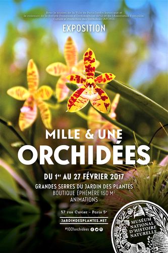 Exposition « Mille et Une Orchidées », du 1er au 27 février 2017, aux Grandes serres du Jardin des Plantes, 57 rue Cuvier à Paris (5è). Métro : Gare d'Austerlitz, Censier ou Jussieu. En cas de fermeture du jardin, on peut accéder à l'exposition par le 18 rue Buffon. Ouverte tous les jours (sauf le mardi) de 10h00 à 16h45. Entrée : 5 et 7€. Site internet :