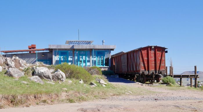 L'entrée du parc du Salto del Penitente se situe au km 125 de la route N°8 et des panneaux routiers indiquent clairement la chemin à suivre. A un moment donné, je suis invité à quitter la route nationale pour emprunter une toute petite route bitumée mais sinueuse sur onze kilomètres. A ce croisement s'élève en bord de route un bâtiment qui fait office de restaurant et de bureau touristique. Les prochains kilomètres m'offrent de jolis points de vue, et j'y apercevrai même une petite maison au milieu de cette étendue plus ou moins désertique, agrémentée de deux vieux wagons de chemin de fer dont on se demande bien par quel miracle ils ont pu finir leur course à cet endroit(ci-dessous). Je parviens au parc au bout d'un quart d'heure mais l'endroit est désert. Je me gare en face de ce qui s'avérera être un refuge pour touristes de passage. Un peu plus loin, un panneau m'indique de la direction à prendre pour atteindre la cascade en contrebas (ci-dessous). Une construction appelée parador (auberge) surgit soudain au milieu d'une végétation dense. C'est là que je ferai connaissance des habitants des lieux. Cet auberge existe depuis 2004 et offre un point de vue unique sur les environs et dispose d'un mirador sur son toit. Les marches sont nombreuses et la vue de la cascade se mérite. D'autant plus qu'il me faudra faire dans quelques instant le parcours inverse dans le sens de la montée. Cette cascade de plus de soixante mètres de haut ne m'impressionnera pas. Il est vrai que l'eau semble manquer en cette saison. Au risque d'être déçu, mieux vaut venir ici pour la végétation, le côté sauvage de l'endroit et les paysages grandioses. A l'origine, la Sierra de Canapé, endroit où je me trouve, est située à 300 mètres au-dessus du niveau de la mer et doit son nom aux deux rochers qui, vus d'en haut, forment deux mains jointes en prière (en pénitence) d'où le nom du parc. En 2002, la famille Ferber-Munoz fit don au département de dix hectares de terrain. Puis, un concours fut organisé afin de savoir par quel moyen l'endroit serait mis en valeur. 23 projets furent présentés et un seul, celui qui est réalisé aujourd'hui, fut retenu en 2004. Si vous cherchez le dépaysement à une encablure de Minas, vous avez frappé à la bonne porte.