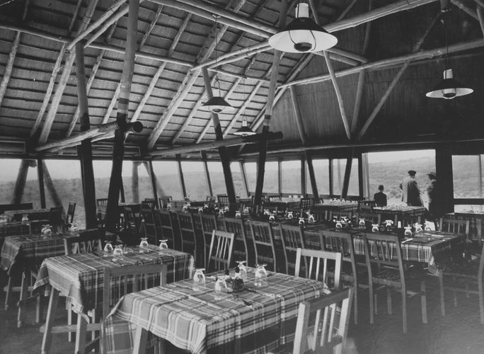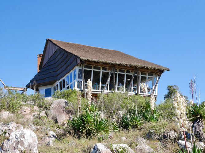 C'est dans la vallée de la Joie, nom prédestiné, que Juan Vilamajo eut l'idée de bâtir en 1946 un restaurant (ci-dessous, une photo de celui-ci à l'époque) qui sera classé comme Monument national en 1979. Son nom, Ventorillo, symbolise l'auberge. Oeuvre emblématique, cette grande maison, peu à peu laissée à l'abandon, subit une restauration complète en 2009, et d'autres maisons connurent le même sort. D'autres villas, certaines minuscules, verront le jour des mains du célèbre architecte, comme la Meson de las Canas qui sera bâtie en 1947 sur le flanc Est de la colline Guazubira. Ce petit hôtel de douze chambres, agrémenté d'une grande salle de restaurant et d'une piscine avec terrasse permet aux visiteurs de profiter de l'endroit sans même devoir sortir de la propriété. L'ensemble du programme de la Villa Serrana ne dépasse guère 150 maisons rassemblées pour la plupart autour du noyau originaire de la Sierra Alta. A Villa Serrana, se dresse également un quartier ouvrier, modeste ilot d'habitations permanentes avec ses quelques édifices publics (école, poste de police...) et l'Observatorio Eta Carinae, qui fut érigé en 1997 par l'astronome Gonzalo Vicino, à la périphérie de la forêt. On fête d'ailleurs en janvier la journée de l'astronome amateur.