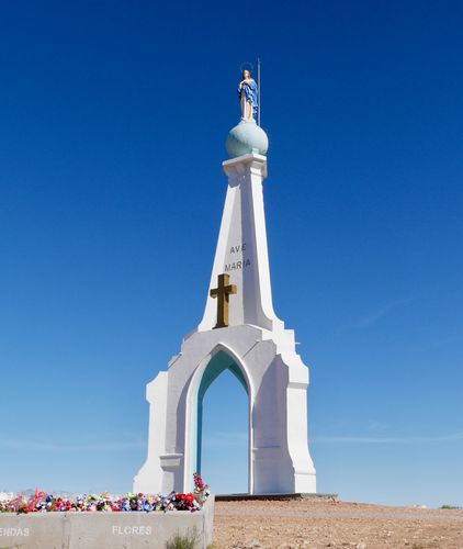 L'origine de ce monument se trouve du côté de Monseigneur Soler, lequel chargea en 1906 l'architecte D.Cayetano Bringas de construire un monument comprenant trois piliers avec des anges qui représenteraient les trois vertus théologiques, la foi, l'espérance et la charité. Et l'oeuvre architecturale de se dresser ici depuis novembre 1909, avec, en son sommet, une statue de la Vierge (ci-dessous) mesurant trois mètres quinze de haut, originaire de France, et qui sera bénie par Monseigneur Isasa. 2012 sera l'année où l'endroit recevra le titre de sanctuaire national , et 2014, l'année de restauration de la chapelle de la Miséricorde (deuxième photo).