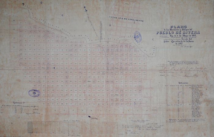 L'emplacement alors choisi pour construire ce village se trouvait juste en face de Livramento (Brésil) et était traversé par de nombreux cours d'eau, qui finissaient leur course dans la jolie rivière de Cunapiru. Le terrain en lui-même était formé de collines, de plaines et de monts rocheux escarpés. Des terres par ailleurs fertiles, certaines excellentes pour la culture du blé, d'autres pour y cultiver diverses céréales. Nous sommes en 1867 et Rivera possède alors 46 maisons et...341 habitants. Et c'est le 20 juillet de cette même année que Villa de Ceballos deviendra Rivera. Les premiers habitants du village étaient uruguayens, argentins, brésiliens, français, espagnols et italiens. Et la décision de transformer le nom de Ceballos en...Rivera avait été prise pour rendre hommage au militaire Bernabé Rivera. A cette époque, c'est à dire en 1863, la ville brésilienne d'en face, Livramento, est décrite comme une ville commerçante dynamique, avant d'être mentionnée, deux ans plus tard, comme « souffrant de la concurrence de Cebollas », ce qui aboutira à la vente bradée de certains de ses commerces. Dès lors, celle qui allait désormais porter le nom de Rivera n'allait pas tarder à devenir naturellement la capitale du département homonyme