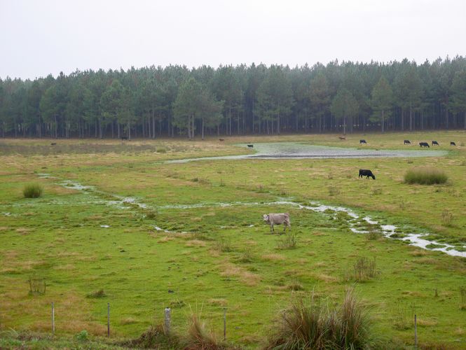 Une route laborieuse m'attend ce matin, alors qu'au réveil, une pluie forte s'abat sur Tacuarembo. Je quitte mon hôtel vers 8 heures et sous une averse désormais, modérée mais le temps est couvert pour la journée, et ne va pas s'améliorer en direction du nord, où se trouve Rivera, ma prochaine destination. Une centaine de kilomètres me sépare de cette ville, mais, heureusement, la route est cette fois en bon état. C'est tant mieux car la pluie redoublera d'intensité durant le trajet, m'obligeant à réduire ma vitesse à 60 km/heure au plus fort des averses.