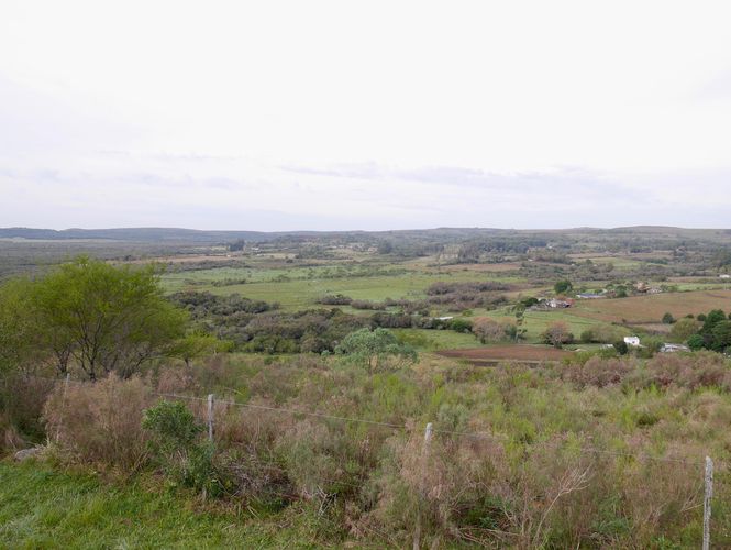 Pour cette deuxième journée à Artigas, je décide de partir à la découverte du département. Je pars sur la ruta 30, route le long de laquelle se trouve le sanctuaire de la Vierge des 33 Orientaux. L'endroit se situe à moins de vingt kilomètres d'Artigas, mais il me faudra être attentif car il s'agit d'une simple piste de terre signalée par un petit panneau. Je repère l'intersection au dernier moment et tourne à gauche. Ce sanctuaire s'enfonce à quatre kilomètres à l'intérieur des terres et cette promenade me permettra de croiser ici et là des habitants de la campagne. Aucun ne fait d'auto-stop, car je suppose que les passages de voitures sont rares sur cet axe. Une voiture, arrêtée en bord de route, m'interpelle. Trois hommes s'affairent autour du véhicule et me saluent. Je leur demande s'ils ont besoin d'aide mais ils me répondent qu'ils disposent encore d'un peu de carburant en secours. Je reprends ma route. Je croise tantôt une école rurale, tantôt des ouvriers oeuvrant sur un chantier, des chevaux ou des vaches broutant le long de la piste. Le paysage est vraiment typique et je trouverais toujours quelqu'un pour lever un doute sur la poursuite de mon voyage. Il faut dire qu'ici, en Uruguay, on a une une conception bien différente de l'aménagement du territoire. Un policier à qui je demanderai plus tard mon chemin m'avouera qu'une portion de route étant actuellement en travaux, tous les panneaux indicateurs avaient été retirés. Pas simple !
