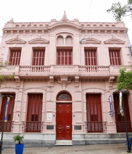 Je redescends désormais la rue commerçant Uruguay, en direction du port. Pratiquement en face de l'office de tourisme de la ville, je m'arrête un instant devant la superbe façade du musée des Beaux-arts (ci-dessous). La ville conserve toujours de jolies façades qu'il m'arrivera de photographier lors de ma promenade (consulter l'ensemble des photos prises lors de cette sortie), souvenirs du temps de la splendeur passée de cette cité.