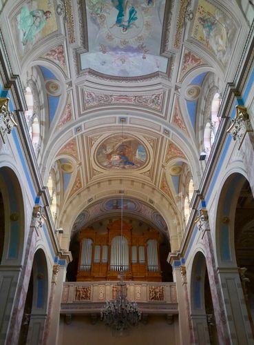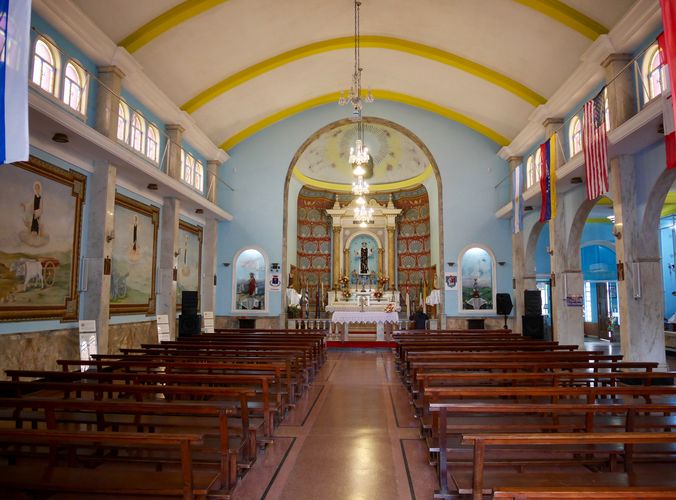 Parmi les curiosités de la cité, je découvrirai en sa compagnie la Cathédrale (ci-dessous en photo), dont la construction débutera en 1894. Je suis immédiatement séduit par la beauté des peintures qui ornent les plafonds de l'édifice, œuvres du peintre Archimède Vitali (deuxième photo). L'orgue tubulaire de 1368 tuyaux ne démérite pas non plus. Imposant par sa taille (sept mètres de haut et six de large), c'est le seul orgue de ce type en Amérique, qui fut fabriqué en Allemagne par Donato Sangaletti. Cette basilique est l'une des plus belles églises du pays, qui est aussi le sanctuaire de la Vierge des 33 Orientaux, patronne de l'Uruguay. Celle-ci y est représentée par une petite sculpture en bois, qui se trouva longtemps dans le village de Villa Vieja (anciennement Villa del Pintado).