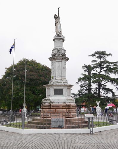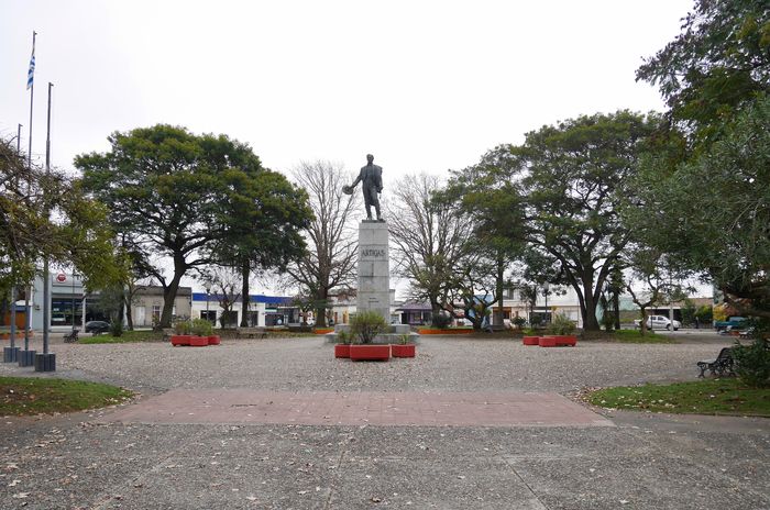 Autre place de la ville, la Place Artigas (deuxième photo), délimitée en 1858, quelques années seulement avant le mois d'avril 1863. A cette époque, l'Uruguay connaissait la guerre civile avec de sévères affrontements entre les Blancos et les Colorados, jusqu'à l'occupation de Florida par l'armée, en 1864. Lors de la bataille de la « Prise de Florida », le fils ainé du général Venancio Flores mourra en héro. Et Venancio Flores, qui avait vaincu face à l'armée nationale, de décider, sans doute par représailles, de fusiller alors sept des défenseurs de la ville, précisément sur cette Place Artigas.