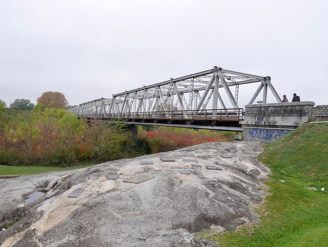 En préparant ma venue, j'avais localisé le bureau du tourisme situé en face d'un grand parc au bord de la rivière Santa Lucia, qui abrite la Piedra Alta (ci-dessous), endroit où furent jadis promulguées les trois lois fondamentales du pays, le 25 août 1825, à savoir l'indépendance de la Province orientale de l'empire du Brésil (loi d'indépendance), l'union avec les Provinces Unies du Rio de la Plata (loi d'union), et la création du nouveau drapeau de la province (loi du drapeau).