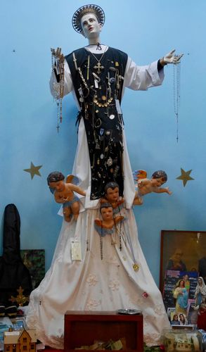 Il existe à Florida une petite église, la Chapelle San Cono, qui montre le poids de la communauté italienne dans cette ville. Le nom de San Cono est celui d'une famille italienne, laquelle, à quelques mois de la naissance de leur fils, fit un rêve qu'elle confia au prêtre de la paroisse. Et celui-ci d'annoncer aux parents un destin glorieux pour ce fils à naitre. La communauté italienne de la ville avait rapportée avec elle la réplique en bois de l'image de San Cono, et entreprit bientôt la construction de la fameuse chapelle. Quant à la dévotion pour ce saint, les avis étaient partagés. Certains y croyaient, d'autres faisaient preuve d'indifférence. Le saint italien naquit donc à Diano-Teggiano (au sud de l'Italie), à la fin du XI ème siècle, et rejoignit, alors qu'il était encore enfant, l'ordre bénédictin. Ses parents n'ayant pas envie de perdre leur fils unique, s 'opposeront à ce départ mais le garçon partit se réfugier au monastère de Santa Maria de Cadossa, situé à quelques kilomètres de sa ville natale. Les parents se rendirent au monastère pour récupérer leur fils mais celui-ci se cachera dans un four à pain. On eut beau l'appeler, rien n'y fit et c'est là la premier miracle de San Cono, celui d'avoir au bout du compte persuadé ses parents de son engagement auprès de Dieu. Autre miracle, en 1261 : alors que les villages de Diano et de Padula se disputaient les restes du futur saint, la dépouille de San Cono demeura dans le monastère de Santa Maria de Cadossa. Quant aux villages, faute de s'être mis d'accord, ils décidèrent de charger le corps de San Cono sur une charrette tirée par deux bœufs (un de chaque village). Mais les bêtes moururent curieusement à l'entrée du village de Diano. Notre saint n'avait manifestement pas envie de quitter le monastère. D'où la tenue depuis, d'un pèlerinage annuel au monastère, en souvenir de cet événement. Autre péripétie : en 1497, le roi Frédéric d'Aragon, en désaccord avec le prince Antonelo San Severino, décida d’assiéger le village de Diano. Et la population menacée, de faire appel à San Cono. Aussitôt demandé, aussitôt fait, puisqu'on raconte que durant les 45 jours de siège du village, aucun boulet de canon ennemi ne parvint à détruire les murailles de Diano, ni à tuer un seul de ses habitants. Certains affirmèrent même avoir distingué l'image du saint flottant dans le ciel. C'est pourquoi deux boulets de canon restent encore aujourd'hui à proximité des restes du saint homme. Et de nos jours, croyants ou pas, des milliers d'habitants et de touristes se rendent à cette petite chapelle lors du pèlerinage annuel qui a lieu le 3 juin, histoire de se recueillir devant l'image sainte, certains faisant une offrande, d'autres se mettant à genoux ou se découvrant devant San Cono (troisième photo).