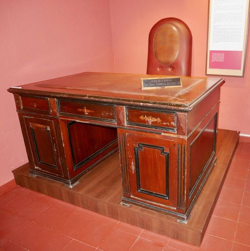 Dernier personnage du registre : Tomas Berreta. Militant des Colorados, l'homme se battit pour les idéaux de Batlle lors des guerres civiles de 1896 et de 1904. Il sera plus tard chef de la police de Canelones et Intendant du département (entre 1911 et 1920). Sa riche vie politique le conduira tour à tour aux postes de député, Ministre des Travaux Publics (qui lui permit de bâtir d'ailleurs le lycée de la ville qui jouxte ce musée) et Président de la république entre 1947 et 1951, poste qu'il n'occupera que pendant cinq mois à cause de sa mort prématurée le 2 août 1947. Sur la deuxième photo ci-dessus, on peut observer son bureau.