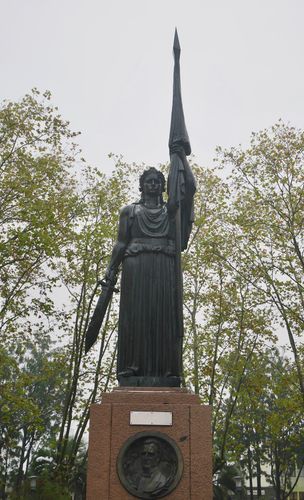 Le musée historique ne contient que trois salles, dont une offre actuellement une exposition temporaire sur José Artigas, mais celles-ci sont richement dotées et offrent de nombreux panneaux d'information. Sa visite m'apprendra beaucoup sur cette ville car les endroits remarquables de Canelones restent peu nombreux : la cathédrale N.D de Guadalupe, l'imposante statue de la liberté (ci-dessous) sur la place, juste en face, et le théâtre Politeama, constitueront l'essentiel de mes photos ce matin.