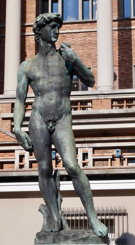 Le Palais municipal (ci-dessous) est le siège de l'Intendencia de Montevideo, organe exécutif du gouvernement départemental de la ville. Lui aussi situé sur l'avenue 18 de Julio, doit tout à l'architecte uruguayen Mauricio Cravotto, lequel débuta sa construction en 1935. Sa tour principale mesure 78 mètres de haut. Des expositions sont organisées à l'extérieur de l'ensemble, là où se trouve d'ailleurs le Musée de l'histoire de l'art et des archives photographiques de Montevideo. Je m'arrête quelques instants devant le réplique du David de Michel Ange (deuxième photo ci-dessous) qui s'élève sur l'esplanade.