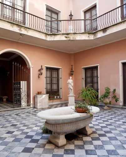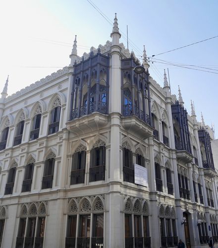 la Casa de Francisco Gomez (ci-dessous), désormais occupée par la Junta départementale de Montevideo a de quoi séduire. La junta est l'organisme exerçant les fonctions législatives et contrôlant le gouvernement de Montevideo. 31 édiles y siègent pour une durée de cinq ans et sont élus par le peuple. Cet organe de pouvoir est installé dans l'ancienne maison de Francisco Gomez. Comme son père, Antonio Gomez fut un important homme d'affaires qui fit fortune lors du développement de l'Uruguay. Au milieu du XIX ème siècle, il acquerra un terrain sur lequel il fera ériger sa résidence par le talentueux architecte Ignacio Pedralbes, reconnu comme le précurseur de l'éclectisme historiciste dans ce pays. Les travaux se dérouleront de 1871 à 1874, et l'édifice, bâti autour d'un patio central, servira d'exemple pour d'autres constructions de même style plus tard à Montevideo. Celui-ci offre des balustres en marbre et de jolies ferronneries dans ses niveaux supérieurs, tandis qu'une claire-voie apporte la lumière aux ouvertures intérieures donnant sur le jardin. Le 19 septembre 1888, Francisco Gomez cédera cet édifice à la Junte économico-administrative de Montevideo sans finalement ne l'avoir jamais habité. L'administration de l'époque y effectuera des travaux (dont la pose de vitres à l'effigie de la Junta) avant de l'occuper un an plus tard.