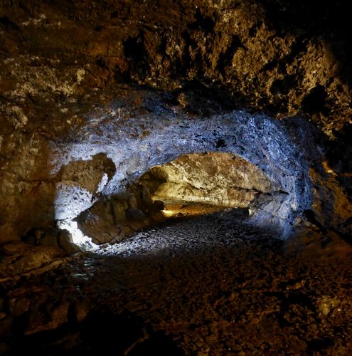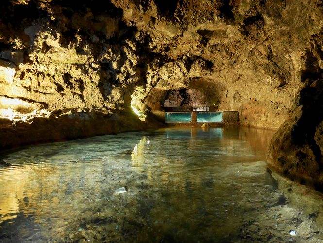 Toujours à Sao Vicente, je visite les grottes et le centre de volcanisme : sous terre, il fait une fraicheur constante durant cette balade de près d'une heure (visite des grottes et visite du musée). Les grottes furent découvertes au cours du XIX ème siècle par des habitants, puis explorées dès 1885, par le biologiste anglais James Yate Johnson. Elles sont nées des convulsions du volcan et sont unique sur l'île. Formées il y a 890 000 ans, lors d'une éruption dans la région du haut plateau de Paul da Serra, la croute extérieure s'est rapidement solidifiée au contact des basses températures mais à l'intérieur, la lave continua de couler à une température de 1200°C donnant ainsi naissance à cinq tunnels (sur un kilomètre de long et un dénivelé de 19 mètres) en photo ci-dessous. J'apercevrai sur place des voutes tapissées de mousse verte mais aussi d'autres concrétions nappées. Le lieu abrite également des lagons comme le lac des désirs (ci-dessous). L'exposition sur le volcanisme, elle, a été inaugurée en 2004 et apporte un complément utile à la première partie de la visite. Deux films d'une dizaine de minutes sont projetés au public, qui simule entre autres la naissance de l'archipel madérien. On plonge dans les entrailles de la Terre et l'on découvre différentes roches souvent utilisées pour la construction de bâtiments à Madère. Ce parcours interactif est à la fois conçu pour les petits et les grands.