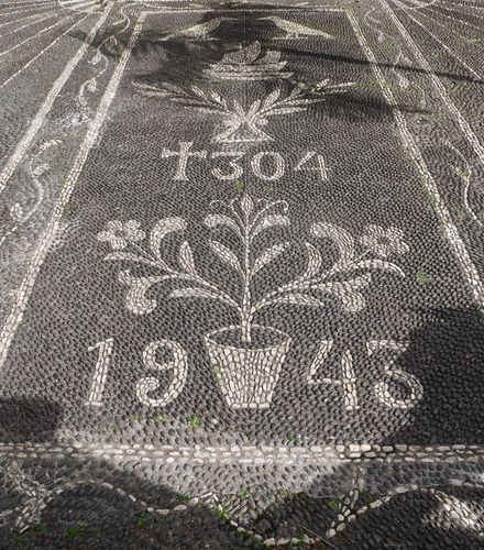 Je me promène à travers les ruelles du village et arrive bientôt à l'église Saint-Vincent, de style baroque, qui a pour patron Vincent de Saragosse, martyrisé en l'an 304. On fit rôtir le pauvre homme sur le gril avant de jeter son corps en pâture aux bêtes. Un corbeau apparut alors qui veilla sur la dépouille du saint. Une légende prétend même que l'oiseau serait parvenu à repousser une meute de loups. Le motif du corbeau dans la mosaïque de galets (ci-dessous) qui orne le parvis de l'église y fait référence. L'intérieur de l'église est quant à lui magnifique et offre un maitre-autel en bois doré, des frises d'azulejos et des peintures de Max Römer. Plus bas, un peu à l'écart du centre villageois, et sur la petite rivière qui se jette dans l'océan atlantique, se dresse également la chapelle de Saint-Vincent (deuxième photo), construite en 1692 dans le style baroque.
