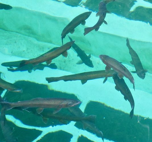 Je rebrousse chemin pour passer de la route ER 202 à la ER 103 et me rendre jusqu'au Ribeiro Frio (le ruisseau froid). Ce cours d'eau alimente un élevage de truites (ci-dessous) et beaucoup de touristes y font une halte, d'autant plus que derrière le Victor's Bar se trouve un parcours forestier jalonné de cèdres de Madère et d'arbres à muguet. A condition d'avoir le temps nécessaire, c'est à dire une petite heure, on peut emprunter le PR 11, une piste très facile qui mène à un belvédère, Miradouro dos Balcoes (à 920 mètres d'altitude). Le terrain étant tout à fait praticable avec des chaussures normales, je me lance et mettrai une vingtaine de minutes seulement pour atteindre le belvédère. Le sentier PR 11 est longé par une levada sur une bonne partie du trajet, ce qui rend la balade encore plus rafraichissante. La vue sur place est imprenable sur les versants boisés des grands pics : de gauche à droite, on aperçoit le Pico do Arieiro, le Pico das Torres et le Pico Ruivo.