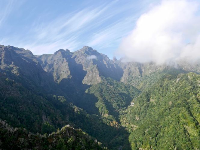 La version alpestre de Madère n'est pas une légende, et il existe bien une cordillère de pitons rocheux qui émergent des nuages et des nids d'aigle parfois enneigés, dominant d'impressionnants ravins. J'emprunterai donc ce matin la route ER 103 qui relie Funchal à Faial, pour arriver bientôt au col du Poiso (1400 mètres d'altitude) d'où part une route panoramique (la ER 102) qui me mènera au cœur de la zone des grands pics. C'est dans cette zone qu'eurent lieu les plus grandes éruptions volcaniques.