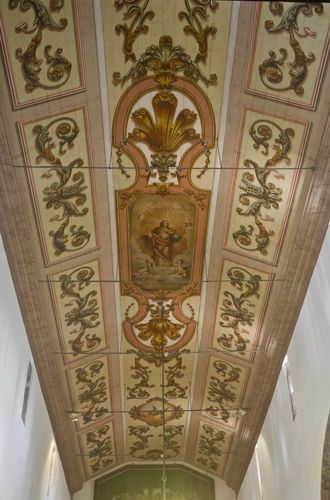 Je ne suis pas trop amateur de ces zones touristiques surpeuplées et reprendrai rapidement mon véhicule pour me diriger vers Santa-Cruz : l'église paroissiale (en photo ci-dessous) offre un joli plafond peint (deuxième photo). Mais elle est également la preuve de la prospérité passée de l'endroit, à l'époque où l'on cultivait ici la canne à sucre, c'est à dire au début du XIX ème siècle. Les dimensions de ce lieu de culte et son clocher tout blanc le montrent, car cette église est la plus grande de Madère, juste après la cathédrale de Funchal. Même le roi Manuel 1er aurait participé en son temps à son financement, ce qui explique d'ailleurs pourquoi le décor intérieur comporte des éléments de style manuélin, comme la fenêtre derrière les fonts baptismaux ou encore la tombe située sur le bas-côté gauche. Le plafond en berceau, lui, est superbe et joliment peint avec des volutes. Autres curiosités de cette petite ville : le front de mer, avec l'Alameda plantée de palmiers, le marché réputé pour la fraicheur de ses poissons, et la Quinta do Revoredo, ancienne propriété de famille des Blandys, convertie en maison de la culture depuis 1992.