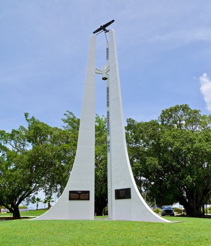 On le voit de loin compte tenu de sa hauteur. Le mémorial Catalina (en photo ci-dessous) rend hommage aux 11è et 20è escadrons de la Royal Air Force avec, en son sommet, une réplique d'avion qui fut posée là en 1995, lors des célébrations du 50è anniversaire de la Seconde Guerre mondiale. Il est intéressant de lire le long texte (en anglais) figurant sur une plaque de cuivre située au pied du monument. On y apprend en effet le rôle primordial que jouèrent les escadrons de la RAAF afin de contrer la progression des forces japonaises dans le Pacifique. En janvier 1942, les deux escadrons australiens attaquèrent ainsi la principale base navale japonaise située dans les îles Carolines, avant de bombarder plus tard Tulagi, à partir de Cairns. Ne renonçant jamais, ces aviateurs prendront tous les risques afin de bombarder les positions ennemies, souvent de nuit.