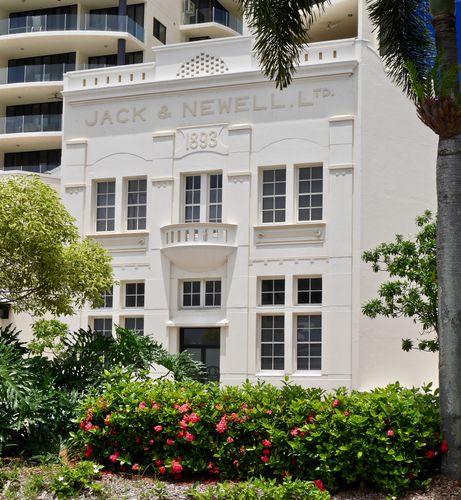 A deux pas de là, sur la Wharf Street, se dresse encore aujourd'hui la façade de l'édifice Jack & Newell (ci-dessous) : cet immeuble fut bâti en 1911 pour le compte de Feamley & Company. Quant à Jack et Newell, ils étaient de riches marchands du nord de l'Etat de Queensland exerçant leur talent à proximité de ce lieu. Tous deux feront l'acquisition de cette maison en 1939. Ils en resteront propriétaires jusque dans les années 1970. Depuis, un projet immobilier a pris place (en 2003) à cet endroit même où s'élève en retrait une tour construite par le groupe Hedley, mais l'édifice a été sauvegardé.
