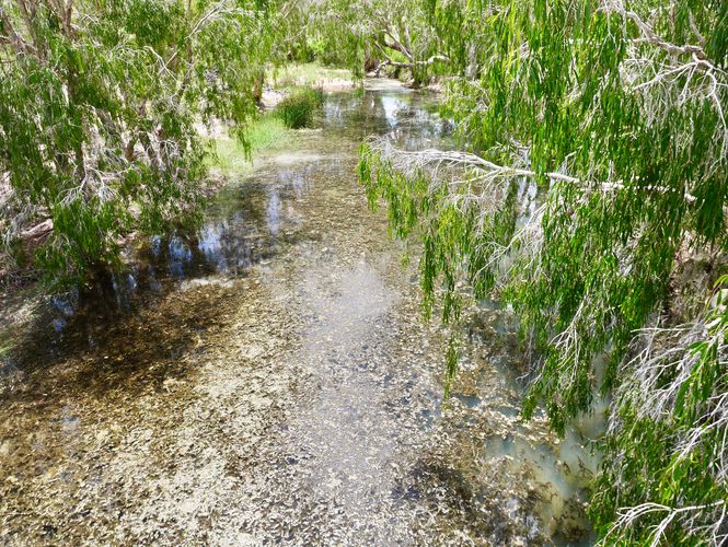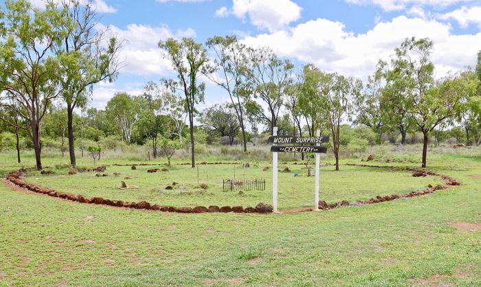 Comment Mount Surprise a t-il bien pu dégoter un tel nom ? Le dictionnaire parle bien d'une butte d'altitude modérée qui domine la plaine environnante, mais bon....En fait, c'est Ezra Firth qui donnera ce nom à ce lieu en 1864. Notre homme, maçon de son état, était originaire du Yorkshire (Angleterre) et ne maitrisait pas bien la langue anglaise mais l'histoire qu'il vivra dans le bush lui inspirera la « surprise » vécue : alors qu'Ezra et sa famille campait à Junction Creek, un des bœufs finit par s'échapper et l'on partit à sa recherche, jusqu'à atteindre un cours d'eau puis un camp d'indigènes tout près de là. Surpris par cette rencontre impromptue, Ezra courut voir son père pour lui apporter la nouvelle et les deux hommes revinrent à la crique et tombèrent cette fois sur une centaine d'Aborigènes. Cette fameuse crique est l'actuelle Elizabeth Creek (ci-dessous) qui se trouve juste avant l'entrée du village. L'histoire ne mentionne pas si des coups de feu furent tirés afin de disperser les Aborigènes. Une autre explication évoque les nombreux feux allumés par ces mêmes hommes dans la forêt d'où la « surprise » des premiers Européens.