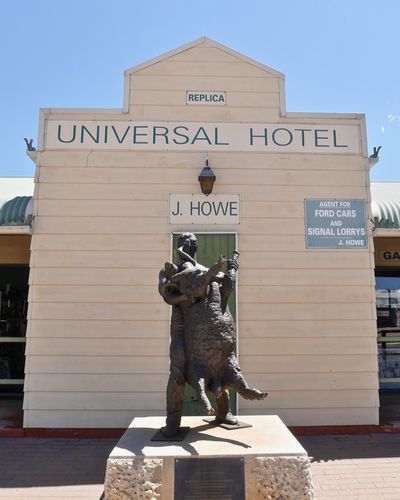 A partir des années 1860, la petite ville développera un certain nombre d'activités autour de l'industrie pastorale, plus particulièrement dans le domaine de l'industrie lainière. Et Jackie Howe (ci-dessous) de devenir ici un personnage de légende. De son vrai nom John Robert Howe, celui-ci était né dans le district de Warwick en 1861 et avait acquis ses talents de tondeur de moutons auprès d'ouvriers chinois. Parti d'abord pour une saison en Nouvelle-Zélande, il reviendra en Australie en espérant faire fortune comme bien d'autres dans les mines d'or, en vain. Son chemin le conduira plus tard dans le Queensland, accompagné d'autres types qui se rendaient de troupeau en troupeau pour effectuer la tonte des bêtes, jusqu'à s'établir durablement à Blackall. Et pour cause, car il épousera la coiffeuse locale, une certaine Victoria Short, en 1890. Le couple aura dix enfants au cours des quinze années suivantes et Jack se spécialisera dans la tonte des moutons, atteignant même l'incroyable record de 321 ovins tondus en...7h40 ce 10 Octobre 1892, dans la ferme Alice Downns située à 19 kilomètres au nord de Blackall. Inutile de rappeler que ce record ne sera jamais battu ! Les semaines suivantes, Jack tondit 237 moutons en une seule journée de huit heures, à la station « Barcaldine Downs » (Barcaldine est la ville qui se trouve à mi-chemin entre Longreach et Blackall) à l'aide d'une nouvelle tondeuse. Sa prospection aurifère ne lui avait jamais porté chance mais notre homme remportera quand même la même année deux médailles d'or lors de compétitions de tonte, prouvant ainsi au monde entier qu'il était bien le meilleur dans sa spécialité. Toutefois, Jack se retira de la tonte en 1900 et à l'âge de 39 ans, pour prendre en gérance, et à tour de rôle, deux hôtels, le Universal Hôtel d'abord (deuxième photo), le Barcoo Hôtel ensuite puis à nouveau le Universal Hôtel. La maladie rattrapera Jack en 1919 et le contraindra à cesser toute activité puis à se retirer à Sumnervale, sa propriété familiale après une existence bien remplie, qui l'avait aussi conduit à occuper des responsabilités notamment au sein du premier syndicat des tondeurs de moutons du Queensland dès 1887, puis auprès du parti des travailleurs de Blackall en 1909.
