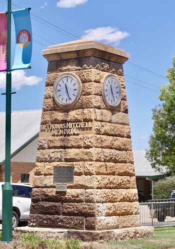 La région fut explorée pour la première fois en 1846 par Sir Thomas Mitchell. Géomètre et explorateur, notre homme d'origine écossaise obtiendra un poste d'arpenteur général en Nouvelle-Galle-du-Sud en 1827 et excellera en réalisant la topographie de la route du Grand Nord qui sera bâtie par les bagnards de 1826 à 1836. Cet axe reliait alors Sydney à la vallée Hunter. Sir Mitchell fera également la topographie de la route du Grand Sud de Sydney à Goulburn. Pour les besoins de sa mission, il sera chargé dès 1834 de faire des relevés dans 19 différents comtés dont celui de Blackall. La carte qu'il produisit sera d'une telle habileté et d'une si grande précision qu'il sera fait chevalier. De nos jours, Blackall lui rend hommage avec une horloge mémorial (ci-dessous) située au centre-ville.