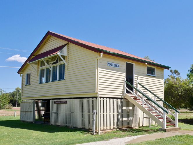 Dans une autre partie du parc se dresse toujours l'école Yalleroi (en photo ci-dessous), inaugurée en 1933 avec, à sa tête, Mademoiselle Gladys Kidd, sa première institutrice. Un petit coup d'oeil en-dessous de cet école permet d'observer divers objets dont des calèches datant des années 1800 aux années 1940. Bref, un petit musée à ciel ...couvert !