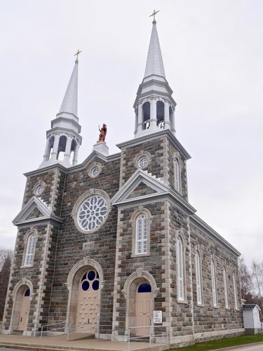 La première chapelle que je croiserai sur ma route est celle de Saint-Isidore (en photo ci-dessous). Celle-ci, qui porte aussi le nom de chapelle orientale, fut consacrée sous l'invocation de la Sainte Vierge et est utilisée lors des célébrations de la Fête-Dieu en tant que première chapelle de procession. Elle fut construite dans l'Anse de l'attente (appelée ainsi car autrefois, les embarcations attendaient ici le bon vent ou l'appoint de la marée). Le tabernacle situé à l'intérieur de la chapelle fait partie des objets historiques sacrés de l'église Saint-Louis, toute proche. Et la chapelle de constituer la réplique de la maison de Dieu depuis sa construction le 13 novembre 1836. L'église Saint-Louis (deuxième photo) sera quant à elle érigée en 1885 et est depuis reconnue comme l'une des plus belles églises du Québec, avec son architecture de style néo-classique. L'intérieur n'étant pas accessible, je ne pourrai malheureusement pas admirer les trésors qu'elle renferme, parmi lesquels quinze fresques peintes tout autour de la voûte par Gaston Masselotte, qui retracent les principales étapes de la vie de Saint-Louis. Peintes directement sur le bois, ces œuvres furent restaurées en 1977. D'autres œuvres proviennent d'artistes comme Baillarger, Levasseur ou Plamondon et de nombreux objets comme le chemin de croix, les statues ou les chandeliers furent offerts à l'église par les paroissiens eux-mêmes. Il me faudra revenir en période estivale pour profiter d'une visite guidée.