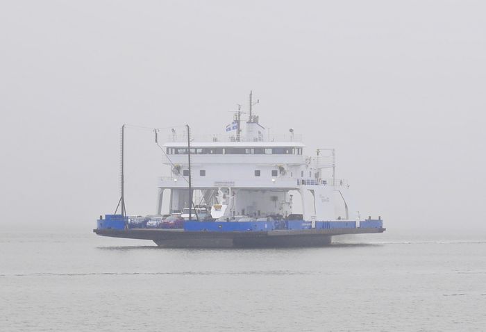 Bienvenue sur l'Isle aux Coudres ! Avant l'installation sur place des premiers colons, l'endroit servait de halte pour la navigateurs qui voulaient enterrer des membres de leur équipage décédés durant la traversée. Les premières familles se fixèrent sur l'île en 1720 et vécurent de l'agriculture et de la pêche. Le fleuve Saint-Laurent fournit de tous temps les moyens de subsistance à ces paysans qui durent s'habituer à la navigation, que ce soit pour chasser le marsouin ou pour pratiquer le cabotage. Non seulement des générations de marins se succédèrent sur ce morceau de terre mais l'île abrita également des chantiers de construction de goélettes à voile ou à vapeur. L'une de ces goélettes depuis disparue, porta le nom d'Isle aux Coudres (ci-dessous), un nom choisi en 1928 par Harvey et Lajoie, deux insulaires qui eurent l'idée de construire ce bateau afin de l'utiliser comme navire de transports de matériaux et de bois de pulpe dès 1930 pour une période de trois année, et uniquement durant l'été, entre l'île et Saint-Joseph de la Rive. Ces traversées se poursuivront entre 1937 et 1948 tandis que des canots à glace remplaceront la goélette une fois l'hiver de retour. Aujourd'hui, c'est à bord du traversier « Joseph Savard » (deuxième photo) que j'embarque ce matin pour me rendre sur l'île en un quart d'heure. La météo, peu clémente, nous gratifie à nouveau d'un brouillard à couper au couteau.