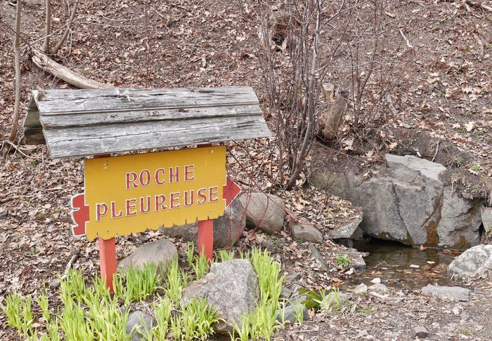 A un kilomètre de là, je fais une halte à la Roche pleureuse (deuxième photo) qui est liée à une histoire incroyable: en 1805, Charles Desgagnés prend la mer durant l'été pour effectuer une traversée avec ses hommes, dont il espère être revenu à la fin septembre afin de se marier. Sa fiancée en profitera pour préparer le futur logis du couple en attendant le retour de son promis. Mais fin septembre, point de Charles à l'horizon, et Louise, la fiancée, de trouver le temps long, elle qui passait ses journées assise sur une pierre en bordure de mer. L'hiver fut long et pénible et Louise passait ses journées en sanglotant sur la pierre. En mai suivant, la jeune fille ne rentra pas chez elle et les habitants de l'île la recherchèrent vainement. Un matin, son père observa attentivement une grosse pierre entourée de fleurs sauvages sous laquelle s'échappait un filet d'eau, posa sa tête sur le caillou, puis demanda aux hommes de regagner leur logis. Louise, transformée en pierre, pleure depuis lors, en toutes saisons, son fiancé perdu en mer.