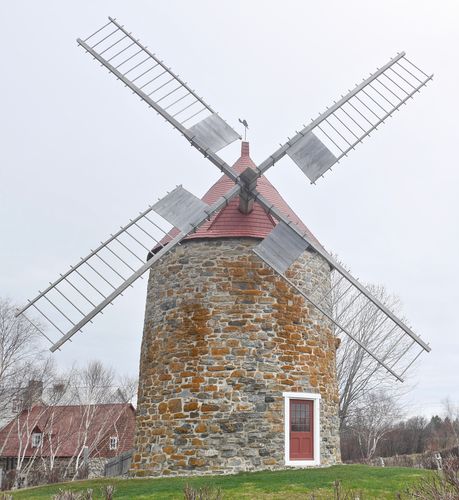 L'Isle aux Coudres est unique en soi au Québec car elle rassemble à la fois un moulin à eau et un moulin à vent : ces deux moulins permettent encore aujourd'hui de fabriquer la farine de blé et de sarrasin avec laquelle on confectionne encore des produits en vente sur place (voir les infos pratiques). Le moulin à vent (en photo ci-dessous) fut bâti en 1836 dans la seigneurie du même nom, alors propriété du Séminaire de Québec depuis 1687. Ce moulin était dit « banal » car le régime seigneurial de l'époque imposait aux seigneurs l'obligation de construire un moulin pour leurs censitaires,lesquels devaient y faire moudre leur grain et payer en retour un droit de mouture, nommé droit de banalité. Conçu avec une hélice à quatre ailes, ce moulin pouvait toutefois en supporter six en cas de besoin. Le monument sera classé en 1962 puis fera l'objet de travaux de restauration les années suivantes. Quant au moulin à eau (deuxième photo), il fut bâti en 1826 pour répondre aux requêtes pressantes des habitants qui devaient partir à Baie Saint-Paul ou aux Eboulements afin d'y moudre leur grain. Lui aussi sera un moulin banal et plusieurs meuniers s'y succéderont. Plus tard, Etienne Bouchard le transformera en moulin à scie. Puis la construction sera elle aussi classée en 1963, puis restaurée dans les années 1980.