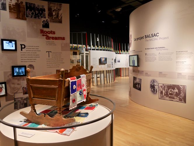 Pour l'heure, je m'intéresse surtout à l'exposition permanente « Des racines et des rêves » qui déchiffre l'histoire de la population sanguenayenne et jeannoise grâce au fichier scientifique BALSAC, et présente au public différentes facettes du Saguenay-Lac-Saint-Jean, de la colonisation à la génétique des populations. En 1972, les premières études en histoire sociale amorcées par Gérard Bouchard sur le village de Laterrière mettront très vite en évidence le potentiel du fichier BALSAC (à ce jour, près de trois millions d'actes se rapportant à 5 millions d'individus, contenant la généalogie de toute la population catholique du Québec depuis les débuts de la Nouvelle-France jusqu'à nos jours). Ainsi, si vous êtes né(e) au Québec entre 1940 et 1960 et si vous êtes d'origine canadienne-française, il vous suffira d'identifier vos deux parents, quatre grands-parents, huit arrière-grands-parents etc...pour une moyenne de 1500 ancêtres différents. Incroyable, non ?