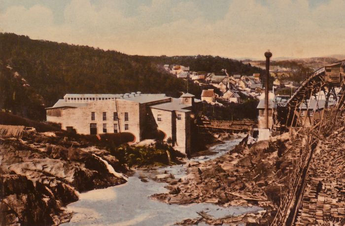 En 1888, le train fait son entrée de la vallée du Saint-Laurent à Chambord et désenclave désormais le pays toute l'année, faisant la part belle aux riches terroirs du lac Saint Jean qui seront les premiers à profiter de nouveaux marchés et de la multiplication des pulperies. L'industrialisation pointe le nez, et les agriculteurs d'investir les profits de la vente de fromage dans les usines de pulpe de Jonquière, de Péribonka et de Saint-André. Cet entrepreneuriat canadien-français sera la source de l'enrichissement de plusieurs familles dont les Guay, Dubuc, Côté-Boivin, et les frères Gagnon...Avant 1880, 72% de la population exerçait le métier d'agriculteur. Et l'économie, surtout tournée sur la subsistance, va progressivement se convertir à l'élevage bovin et à la production laitière, tandis que le développement de la grande industrie fera passer à 51% la proportion de cultivateurs au début du 20è siècle. Les forêts offrent toujours la prospérité mais le sapin et l'épinette ont succédés aux grands pins pour fournir la fibre qui sera ensuite transformée en pâte à papier. De jeunes entrepreneurs, fils de ceux qui avaient jadis plié sus le joug de William Price, ont gagné en assurance, réunissent du capital-risque et créent les premières pulperies (ci-dessous) sous l'impulsion de Joseph-Dominique Guay, de Julien-Edouard-Alfred Dubuc et de bien d'autres.