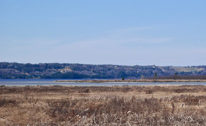 Saint-Fulgence n'est situé qu'à une dizaine de kilomètres de Chicoutimi et se trouve sur la route du Fjord et dans la vallée de la biodiversité. La route qui me conduit à cette localité de 2000 âmes m'offre de jolis paysages. La petite ville abrite les battures où viennent se réfugier les oies bernaches pendant l'hiver. Elles profitent du printemps pour rejoindre des sites de nidification nordiques quelque soit le temps qu'il fait. En effet, ces oiseaux s'orientent d'après des repères visuels comme le relief des paysages, la position du soleil ou des étoiles, le champ magnétique ou les vents dominants. Pour s'alimenter et se reposer, ces grandes voyageuses se posent dans des endroits comme le refuge faunique des battures de Saint-Fulgence (ci-dessous), espace paisible et réconfortant. Juste devant le belvédère, j'aperçois un marais de scirpe d'Amérique, une plante que les bernaches adorent manger. Et les oiseaux de plonger la tête dans l'eau pour en manger les rhizomes !