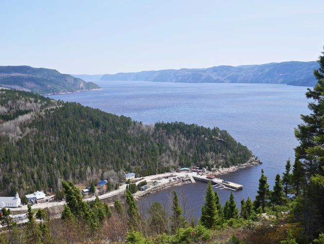 Après cette courte escale, je reprends la route en direction de Sainte Rose du Nord, petit village de 450 habitants, surnommé « la perle du fjord », à cause de ses caps escarpés. Ses habitants portent le délicieux nom de Roserains et peuvent être fiers de leur village puisque celui-ci fait partie des plus beaux villages du Québec. Les premiers occupants du lieu s'installèrent ici en 1838. Il s'agissait alors de bûcherons valeureux conduits par Jules Tremblay, qui débarquaient alors dans ce qu'on appelait à l'époque la « Descente des femmes ». Les frères Auguste, Georges, François et Thomas-Louis Villeneuve s'y installeront à leur tour pour aller défricher l'un des coins les plus sauvages des montagnes du Saguenay. En 1860, arrivent Théophile Lavoie (d'où le nom de l'anse Théophile ou anse du Milieu) et Alexandre Simard (qui s'installe à l'anse de la Descente des Femmes ou anse d'en Bas), des pionniers qui n'occuperont toutefois le territoire que de manière épisodique et qui n'y laisseront aucune descendance. Cinq ans plus tard, Cléophe et Joseph Girard arriveront à leur tour et défricheront l'anse d'en Haut. Leur fils Joseph lancera la première scierie locale en 1881, scierie qui produira du bardeau revendu à la famille Price en échange de provisions. C'est que la forêt jouera un rôle de premier plan dans l'histoire de Sainte Rose du Nord. Une coopérative forestière (la plus ancienne du genre au Québec) y a d'ailleurs toujours pignon sur rue. Au début, une quinzaine d'agriculteurs mirent leurs productions en commun pour la vendre à la compagnie Price Brothers Limited tandis que la même entreprise se concentre aujourd'hui sur le renouvellement de la ressource forestière et le reboisement. Cette société de 50 salariés est le plus gros employeur du village.