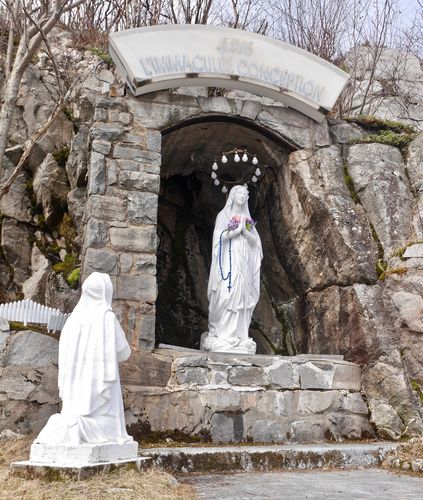 A partir de 1936, la construction va être mise à l'honneur à Baie Comeau, et les premières lettres de patente suivront un an plus tard : les premières vraies maisons voient le jour, puis l'édifice Arcade (premier bâtiment commercial de la ville) est érigé, suivi de l'église, de l'hôpital et du Manoir Comeau. La petite ville s'offrira même un premier mini-golf en août 1944, loisir urbain de l'époque par excellence. Le tout premier tournoi sera organisé les 16 et 17 septembre de la même année. Ce mini-golf laissera place en 1950 à un bureau de poste (désormais maison du patrimoine Napoléon Alexandre Comeau). Les sœurs Sainte-croix (photo) arrivées récemment sur place, se chargeront quant à elles d'assurer la vie religieuse au début des années 1940. Elles dispenseront d'abord un enseignement aux 60 jeunes catholiques francophones et anglophones déjà inscrits à l'école catholique locale. L'église Sainte-Amélie (deuxième photo) célébrera sa première messe le 19 juin 1940 tandis que l'édifice religieux portera le nom de Sainte-Amélie en mémoire de la première épouse de Robert Rutherfold McCormick, fondateur de la cité. Les superbes fresques de l'intérieur de l'église sont l'oeuvre de l'artiste Guido Nincheri. En poursuivant plus haut sur la même route, j'arrive au parc de la grotte de Sainte Amélie, un site qui vit le jour grâce à sœur Saint-Jean-Apôtre et qui reçut la bénédiction de Monseigneur Napoléon-Alexandre Labrie en mai 1950, ce même évêque qui fondera la ville de Hauterive, à six kilomètres d'ici. Depuis les années 1940, il est en effet de plus en plus compliqué de se loger à Baie Comeau compte tenu de l'essor économique. Et certains de parler de Hauterive en tant que ville jumelle de Baie Comeau, à tel point que les deux communes finiront par fusionner en novembre 1982.