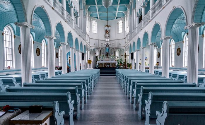 Je roule au pas (à 50 km/heure) lors de la traversée des localités car on ne plaisante pas avec la sécurité au Québec, et des véhicules de police procèdent à des contrôles de vitesse de temps à autre. J'atteins bientôt Rivière au Tonnerre, un village de 280 âmes, qui est célèbre pour sa voûte d'église entièrement sculptée par les villageois d'alors ...au couteau de poche !