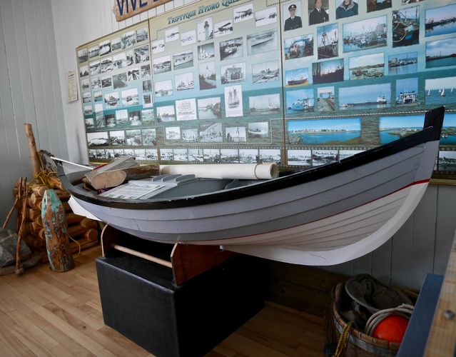 Un petit musée maritime est installé dans l'actuel office du tourisme et permet de consulter un certain nombre de classeurs concernant le fleuve Saint-Laurent, les gardiens de phare et autres aspects historiques du Québec. J'y admirerai l'écusson de Jacques Cartier (première photo ci-dessous). J'y apprendrai aussi l'existence de la poste maritime au temps de la marine à voile. A cette époque, les équipages devaient s'arrêter pour refaire les provisions d'eau fraiche dans certaines îles. Et les marins de laisser sur place des messages (sous la forme de lettres à remettre à la compagnie ou aux familles...) à l'intention des autres navires qui rentraient au pays. Cette coutume a depuis été reprise par les plaisanciers qui, eux aussi, laissent une trace de leur passage sous une forme ou une autre. Astucieux, n'est-ce pas ?