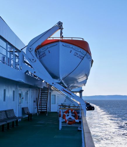 Çà y est, j'ai franchi hier le fleuve Saint-Laurent, au départ de Baie-Comeau. Cette journée de dimanche fut belle et ensoleillée et me fut profitable pour parcourir les presque 300 kilomètres me séparant de Sept-Îles à Baie-Comeau, en roulant tranquillement pour admirer le paysage. Le traversier (en fait, j'ai embarqué hier sur un ferry) qui effectue la desserte quotidienne Baie-Comeau – Matane m'avait convoqué hier pour un départ à 17h00. Le navire, arrivé juste une heure auparavant de Gaspésie, larguera les amarres à 17h00 précises. Bluffé, je félicitais l'équipage pour sa ponctualité très nippone. Nous atteignîmes la Gaspésie au bout de deux heures d'une traversée calme et plaisante.