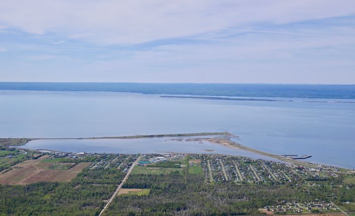 Après une bonne nuit passée à Carleton sur Mer, je me dirige aujourd'hui vers Pointe à la Croix. Autrefois, ce petit village de pêcheurs reçut la visite de Jacques Cartier qui fut le premier Européen à débarquer ici. Nous sommes alors le 9 juillet 1534 et notre navigateur malouin effectue son premier voyage au Canada. Suivra l'exil des Acadiens en 1755-1760, et leur persécution par les Anglais. Beaucoup d'Acadiens se réfugieront alors à Carleton et à Maria. Tournant nouveau pour ce village vers la fin du 19è siècle, lorsque la riche bourgeoisie du Québec jettera son dévolu sur cette localité très agréable il est vrai. La charmante propriétaire de l'hôtel où je suis descendu m'a dressé une petite liste des curiosité de Carleton. Et de m'encourager à me rendre jusqu'au phare (en photo ci-dessous) qui matérialise l'entrée du barachois (sorte de lagune), refuge pour les oiseaux, tout particulièrement pour les hérons. Le centre d'interprétation de l'endroit est malheureusement fermé en cette saison. C'est dommage car l'intérieur comporte plusieurs panneaux d’information concernant cette zone.