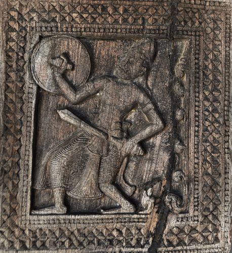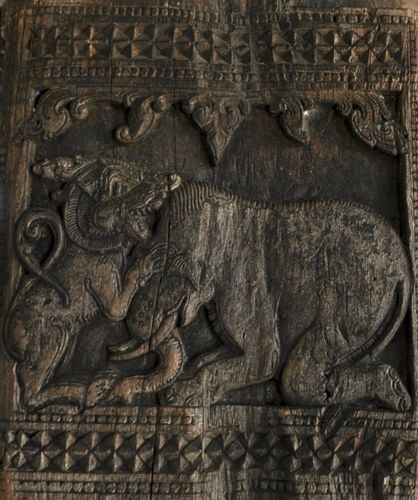 Le temple Embekke Devale a pour sa part été bâti aux 14è et 15è siècles, avec sa salle d'audience réservée aux rois de Gampola. Plus tard, l'endroit sera dédié au dieu cinghalais de la guerre, Kartikeya. A l'intérieur du Digge (couloir des tambours), j'observerai une multitude de sculptures, dont aucune n'est identique à une autre. Certaines d'entre elles attirent mon attention comme le soldat cinghalais (ci-dessous) ou le lion et l'éléphant (deuxième photo). Toutes ces œuvres rendent ici hommage au talent et au savoir-faire des artisans ayant appartenu à l'école des sculpteurs sur bois de l'époque.