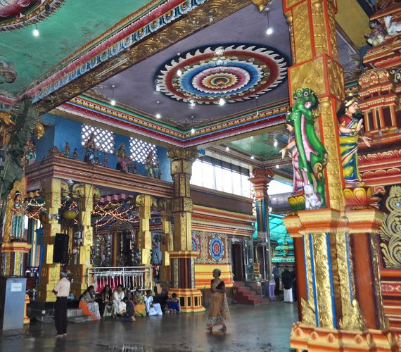 Le temple Muthumariammam, qui fut érigé en 1874 à l'initiative de Nattukkottai Chaettiar, et qui est un lieu de culte hindou est à la fois fréquenté par les Bouddhistes et les Hindous. L'endroit connut de tristes heures en 1983 lors des violents combats anti Tamouls qui se déroulèrent lors du mois de juillet, alors qualifié à l'époque de « Black July », le point de départ pour certains de la véritable guerre civile au Sri-Lanka. Le temple, lui, a depuis été restauré et son gopuram de 33 mètres de haut est à ce jour l'un des plus élevés dans le pays. Ses sculptures colorées multiples font penser à une véritable bande dessinée qui représentent des dizaines de scènes religieuses mêlant divinités et humains. A noter enfin au passage, le chariot utilisé lors des fêtes (deuxième photo) qui fait la fierté de la communauté.