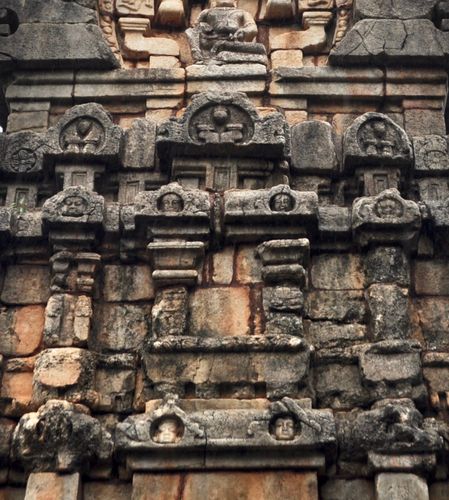 On dit que Nalanda Gedige Temple (ci-dessous) serait le plus vieil édifice en pierre du  pays. Situé au bord d'un lac artificiel, ce temple a été sauvé de la noyade définitive lors de la création de ce lac et a été déplacé en 1985 sur son lieu actuel. Après s 'être garé sur le petit parking, nous accédons au temple en franchissant un portique de pierre qui nous mène directement à une allée ombragée. Les archéologues auraient déterminé que la construction du petit édifice aurait eu lieu entre les 8è et 10è siècles. Et ce sanctuaire aux proportions harmonieuses de mêler les styles hindou et bouddhique, tout en abritant un vieux bouddha de pierre qui semble avoir souffert des outrages du temps. Je m'attarde longuement sur les détails de la façade de pierre car cette dernière contient de nombreux petits personnages que j'ai déjà trouvé dans certaines églises bretonnes.