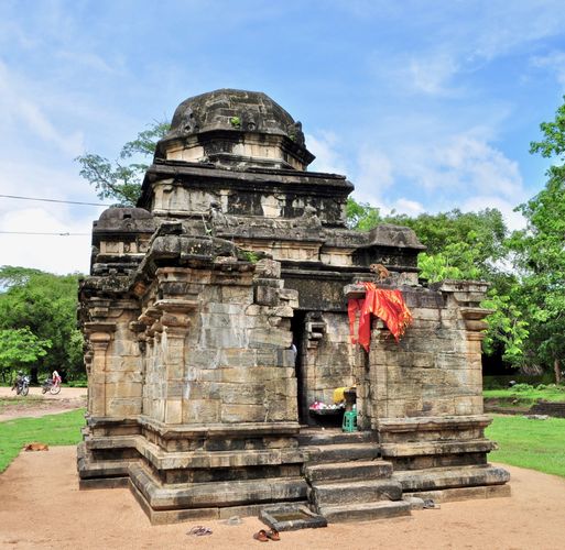 Nous quittons le Quadrilatère pour franchir les limites de l'enceinte et faire une courte halte au Shiva Devale N°2 (en photo ci-dessous). Ce petit temple possède un dôme très bien conservé, ce qui est étonnant car il fut érigé sous les Chola, au 11è siècle. Il s'agit là du plus vieil édifice de Polonnaruwa, qui porte sur ses murs des inscriptions en tamoul.