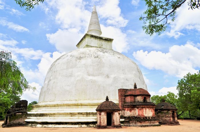 Autre vihara de poids, le Kiri Vihara (deuxième photo), surnommé aussi « dagoba de lait » car cette construction est recouverte d'un stuc blanc laiteux. De style semblable au Rankot Vihara, l'édifice aurait été dédié à Subhadra, l'épouse de Parakramabahu. Quant aux petits édifices situés autour du temple, ils servaient de chambres funéraires pour les prêtres de haut rang et pour les membres de la famille royale.