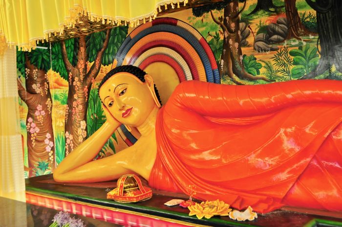 Un grand dagoba (ci-dessous) domine le paysage et nous impose à nouveau une ultime ascension. De cet endroit, on domine toute la région et une maison d'images abrite une grande statue de Bouddha à l'agonie (deuxième photo) que rois et moines sont venus saluer une dernière fois.