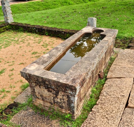 Je vous l'ai dit plus haut, Mihintale est aussi le berceau de la médecine antique : Chaminda me conduit aux ruines du Vejja Sala, un hôpital bâti au 3è siècle de notre ère, et quelques 400 ans avant la fondation du...premier hospice européen. On distingue encore les bains de pierre (ci-dessous) où l'on soignait les malades en les faisant allonger des heures durant dans ces baignoires en pierre agrémentées d'un bain d'huiles médicinales. Les fouilles ont permis d'excaver de nombreux ustensiles médicaux perfectionnés et l'on peut observer une pierre jadis utilisée pour broyer les herbes.