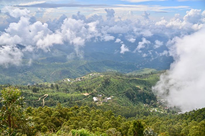 Depuis Haputale, je me rends à Lipton's Seat, un point de vue panoramique sans égal situé en haut de la colline de Poonagala qui domine plusieurs provinces sri-lankaises (ci-dessous). Le nom de l'endroit est ainsi appelé car Thomas Lipton aimait y venir à cheval pour y contempler ses plantations de thé. Nous profitons d'une éclaircie pour faire des photos des champs de thé et des cueilleuses qui y officient, car la météo n'est pas au beau fixe depuis ce matin et un épais brouillard recouvre Haputale en contrebas. Soma et moi empruntons un tuk-tuk pour parcourir les 15 kilomètres depuis Haputale car la route, déjà étroite, se rétrécit au fur et à mesure que nous nous rapprochons du sommet. Les paysages donnent un aperçu de la vie rurale sri-lankaise et nous croiserons plusieurs habitants affairés en ce matin brumeux.