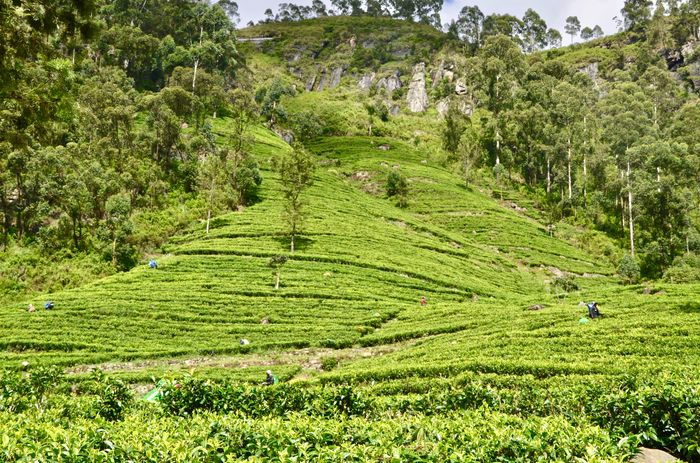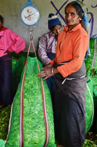 Le thé, il faut le savoir, est le fruit d'un dur et long labeur effectué par des petites mains tamoules qui cueillent les feuilles du matin au soir dans les plantations, et ce, pour un salaire dérisoire (5US $ par jour pour...20 kilos de feuilles de thé récoltés). Leur panier attaché dans le dos, ces cueilleuses se fraient un passage à l'intérieur des théiers pour collecter les précieuses feuilles. Les feuilles ainsi cueillies (seul le bourgeon supérieur et les deux feuilles suivantes sont détachées) partent vers la manufacture la plus proche pour être séchées à l'air chaud afin d'éliminer toute humidité. Puis elles sont roulées et écrasées afin de livrer leur sève et de déclencher la fermentation. A l'issue d'un processus savamment calculé, les feuilles sont soumises au feu d' énormes fours pour produire du thé noir, puis filtrées en fragments de différentes tailles. L'ensemble de ces opérations ne doit pas excéder 24 heures. Reste ensuite à donner un nom au différents « crus » obtenus, selon la taille du fragment de feuille (pekoe, orange pekoe, broken orange pekoe, fannings ou dust utilisés dans les sachets). Un autre classement est aussi réalisé, selon leur lieu (et l'altitude) d'origine : high-grown (qui rassemble les arômes les plus délicats cultivés en altitude, dans les environs de Nuwara Eliya), et mid-grown ou low-grown (plus corsés mais assez bruts de goût, produits sur les contreforts).