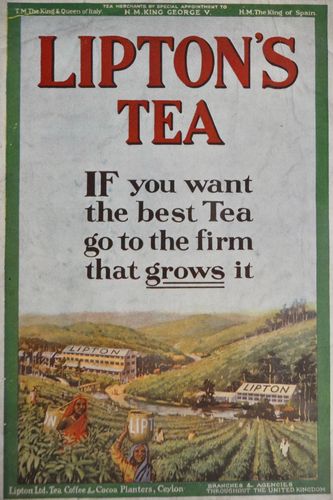 C'est durant les années 1890 que James Taylor rencontrera pour la première fois l'anglais Thomas Lipton (ci-dessus), fils d'un petit épicier irlandais et millionnaire, alors de passage sur l'île de Ceylan sur son chemin pour l'Australie. Les deux hommes parlèrent d'exportation de thé et signèrent un contrat à l'issue duquel la compagnie Lipton achètait du thé de Ceylan. Self-made man, Thomas Lipton fit fortune dans le commerce en utilisant largement la publicité et en vendant les meilleurs produits le moins cher possible à l'intérieur de ses magasins. Né à Glasgow en 1850, il créera son empire dès l'âge de 21 ans avec l'ouverture d'un premier commerce. En 1890, il détenait déjà 300 magasins au Royaume-Uni. Issu d'un milieu modeste, l'homme n'avait rien à perdre et entreprenait sans craindre l'échec. Soignant son carnet d'adresses, il comptera notamment le roi Edouard VII parmi ses amis, ce qui lui permettra d'obtenir sans difficultés l'agrément des monarchies britannique, italienne et espagnole pour son thé. Thomas Lipton sera moins heureux comme skipper, alors qu'il concourra à cinq reprises mais sans succès à l'America's Cup, se forgeant tout de même une notoriété auprès du peuple américain à force de ténacité. Un public qui lui décernera affectueusement en 1930 la coupe du « meilleur perdant ». L'homme d'affaires mourra en octobre 1931 à l'âge de 83 ans.